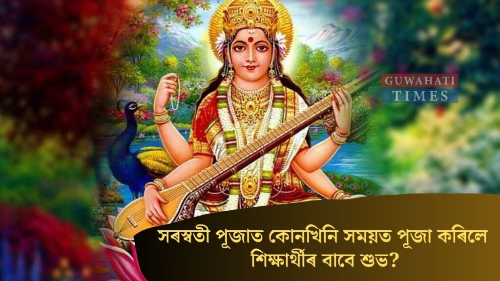 জ্যোতিষী ড০ বুলী দেৱীৰ পৰামৰ্শ অনুসৰি সৰস্বতী পূজাৰ (Saraswati Puja 2024) দিনা পুৱা ৫ বাজি ৩৭ বজাৰ পৰা ৯ বাজি ৩৭ মিনিটৰ ভিতৰত পূজাখন আৰম্ভ কৰিলে ভাল হ’ব আৰু শিক্ষাৰ্থীসকলে পুৱা ৯ বাজি ৫০ মিনিটৰ পিছত যদি মাল্যাপণ কৰে বা সৰস্বতী দেৱীৰ চৰণত সেৱা লয় তেতিয়া বিশেষ সুফল লাভ কৰিব। শিক্ষাৰ্থীসকলে সেইদিনা বগা আৰু গোলপীয়া পোছাক পৰিধান কৰিলে শুভ ফল পাব। লগতে পুৱা যদি গংগা জল দি গা-ধোৱে আৰু দেহত কেঁচা হালধি লগাই তেতিয়াও বিশেষ শুভ ফল লাভ কৰিব।