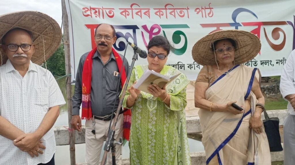 নিউজ ব্যুৰ’,নগাঁও,১৪জুলাই :–ৰবিবাৰে ১৪ জুলাই। কলংপৰীয়া কবি নৱকান্ত বৰুৱাৰ বিয়োগৰ দিন। ২০০২ চনত কবি গৰাকীৰ কায়িক বিদায়ৰ পাছৰপৰা নগাঁৱৰ ৰত্নকান্ত বৰকাকতি দলঙত প্ৰতিবছৰে উদযাপিত হৈ আহিছে দলঙত কবিতা। দলঙত কবিতা অনুষ্ঠানৰ উদ্যোক্তা বিশিষ্ট কবি প্ৰয়াগ শইকীয়াই প্ৰয়াত কবি নৱকান্ত বৰুৱাৰ প্ৰতি শ্ৰদ্ধাৰ্ঘ্য আগবঢ়াই কলঙৰ বুকুত কবিতা উটুৱাই আৰম্ভ কৰা অনুষ্ঠানত পোন প্ৰথমে বন্দনা শৰ্মাই প্ৰয়াত কবি পুলকানন্দ কৌশিকৰ এটা কবিতা পাঠ কৰে। ইয়াৰ পাছতে কবি চন্দ্ৰ শইকীয়া, অনিল শৰ্মা,অঞ্জনা গোস্বামী,কাৰুণ্য ভট্টাচাৰ্য্য,বিচিত্ৰ নাৰায়ণ বৰা,গুণদা গোস্বামী,উজ্জ্বল জ্যোতি দাস,কুমাৰ বিভূতি,দীপিকা বৰা,কবিতা দাস,জয়ন্তী বৰা,বেলা মোদী,লিলি সন্দিকৈ,বিপুল কুমাৰ মজিন্দাৰ,শেৱালী বৰুৱা প্ৰমুখ্যে একুৰিৰো অধিক কবিয়ে দলঙত কবিতা পাঠেৰে অনুষ্ঠানটো জীপাল কৰি তোলে। পূৰৱী শইকীয়া আৰু নিৰ্মালী বৰাই দুটা কবিতা আবৃত্তি কৰাৰ সমান্তৰালকৈ প্ৰফুল্ল বৰা,কুমকুম বৰুৱা আৰু উজ্জ্বল জ্যোতি দাসে একোটিকৈ গীত পৰিৱেশন কৰে। নৱৰূপ জাতীয় বিদ্যাপীঠৰ মুকুল শ্ৰেণীৰ ছাত্ৰী কণমানি দস্মিতা শইকীয়াই কবি নৱকান্ত বৰুৱাৰ এটি কবিতা আবৃত্তিৰে সকলোকে আনন্দ দিয়ে। কবি নবীন কলিতাই সামগ্ৰীকভাৱে আঁত ধৰা অনুষ্ঠানটোৰ আন এগৰাকী উদ্যোক্তা শিশুবন্ধু দুলাল বৰা উপস্থিত থাকি কবি নৱকান্ত বৰুৱাৰ প্ৰতি নগঞা ৰাইজে কৰি অহা এনে স্মৰণে অকল কবিতাকেই নহয় অসমীয়া জাতিৰ পুৰোধা ব্যক্তিসকলৰ কৰ্মৰাজিক নতুন প্ৰজন্মৰ ওচৰত পৰিচয় কৰি দিয়াত সহায়ক হয় বুলি গুৰুত্বপূৰ্ণ মন্তব্য আগবঢ়ায়। বিগত প্ৰায় বাইছ বছৰে চলি অহা “দলঙত কবিতা অনুষ্ঠান”ৰ জৰিয়তে অসমৰ প্ৰতিখন দলঙতে আজিৰ দিনটোত এনে অনুষ্ঠানৰ আয়োজন কৰিবলৈ এটা যোগাত্মক বাৰ্তা প্ৰেৰণ কৰে। লগতে কলঙৰ হাতীমূৰা বান্ধটো ভাঙি কলঙক প্ৰাকৃতিকভাবে বৈ আহিবলৈ দিব লাগে বুলিও কয় ।