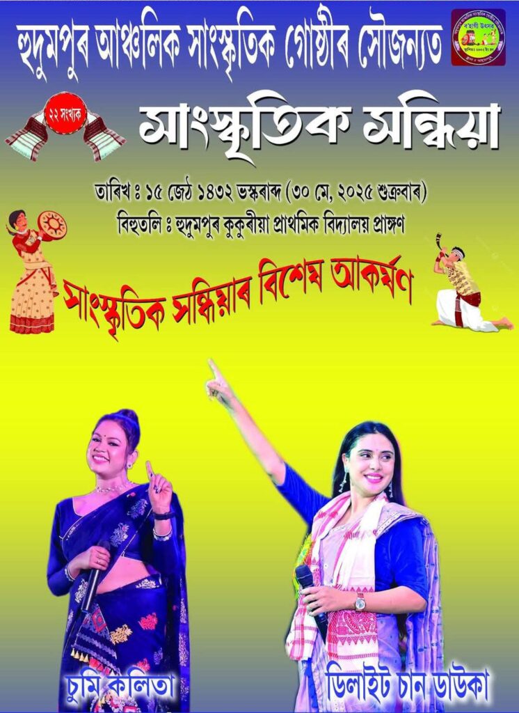 প্ৰতিকুল বতৰৰ প্ৰতি লক্ষ্য ৰাখি আজিৰ হব লগীয়া সাংস্কৃতিক অনুষ্ঠান খন স্থগিত ৰখা হ’ল।