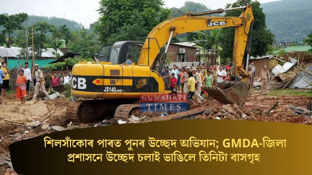 শিলসাঁকোৰ পাৰত পুনৰ উচ্ছেদ অভিযান; GMDA-জিলা প্ৰশাসনে উচ্ছেদ চলাই ভাঙিলে তিনিটা বাসগৃহ
