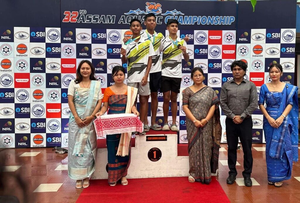 পদক বিজয়ীসকলক বঁটা প্ৰদান কৰে অসম চৰকাৰৰ ক্ৰীড়া আৰু যুৱ সঞ্চালকৰ যুটীয়া সঞ্চালিকা অন্তৰা গগৈ, ক্ৰীড়া বিষয়া বকুল কলিতা, অসম সাঁতোৰ সন্থাৰ উপসভাপতি দেৱ হাজৰিকা, যুটীয়া সম্পাদক চন্দন জ্যোতি ফুকন, প্রচাৰ সম্পাদক মুকুটেশ্বৰ গোস্বামী, কামৰূপ জিলা সাঁতোৰ সন্থাৰ সম্পাদক নৱজ্যোতি গগৈ, যোৰহাট চুইমিং চচাইটিৰ ৰাজীৱ শৰ্মা, মনিকা চৌধুৰী আদি বিশিষ্ট অতিথিসকলৰ উপস্থিতিত।