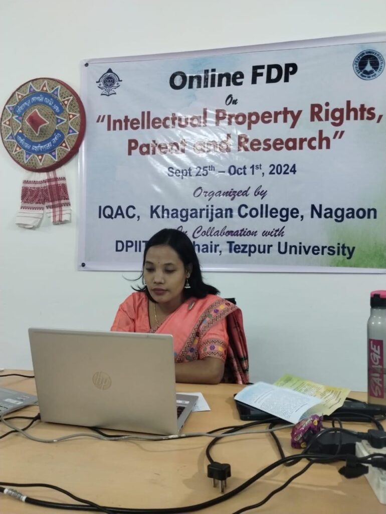 নিউজ ব্যুৰ’,নগাঁও,১অক্টোবৰ :–তেজপুৰ বিশ্ববিদ্যালয়ৰ DPIIT-IPRৰ অধ্যাপক প্ৰীতম দেৱৰ সহযোগত নগাঁৱৰ আগশাৰীৰ খাগৰিজান মহাবিদ্যালয়ৰ আভ্যন্তৰীণ মান নিৰূপণ কোষৰ উদ্যোগত “বৌদ্ধিক সম্পত্তিৰ অধিকাৰ,পেটেণ্ট আৰু গৱেষণা” বিষয়ক এসপ্তাহজোৰা অনলাইন অনুষদ বিকাশ কাৰ্যসূচী (FDP)ৰ মংগলবাৰে সামৰণি পৰে। যোৱা ২৫ ছেপ্টেম্বৰৰ পৰা আৰম্ভ হোৱা খাগৰিজান মহাবিদ্যালয়ৰ অধ্যক্ষ ড° ৰমেশ নাথে কাৰ্যসূচীৰ পৃষ্ঠপোষক হিচাপে আদৰণি ভাষণেৰে শুভ উদ্বোধন কৰা অনুষ্ঠানটিৰ নিৰ্দেশনাৱলীৰ ওপৰত এক চমু আলোকপাত কৰে আহ্বায়ক ৰায়হানুল আহমেদে। তেজপুৰ বিশ্ববিদ্যালয়ৰ DPIIT-IPRৰ অধ্যাপক প্ৰীতম দেৱে অনুষ্ঠানটিৰ পৃষ্ঠপোষক হিচাপে কাম কৰি “শিক্ষাত বৌদ্ধিক সম্পত্তিৰ অধিকাৰ আৰু শিক্ষা-উদ্যোগৰ সংযোগ” বিষয়ক প্ৰথমটি ফলপ্ৰসু আলোচনা আগবঢ়ায়। ইয়াৰ বাহিৰেও অনুষ্ঠানটিত patents,copyright, trademark,বৌদ্ধিক সম্পত্তিৰ অধিকাৰ আইন আৰু নীতি, উদ্যোগীকৰণ,উদ্ভাৱন আৰু প্ৰযুক্তি,বাণিজ্যিকীকৰণ,পৰম্পৰাগত জ্ঞানৰ সুৰক্ষা আৰু সাংস্কৃতিক ঐতিহ্য সংৰক্ষণৰ লগতে কৃত্ৰিম বুদ্ধিমত্তাৰ ভূমিকাকে ধৰি অন্যান্য আকৰ্ষণীয় বিষয়সমূহ সামৰি লৈছে। উক্ত কাৰ্যসূচীয়ে অংশগ্ৰহণকাৰীসকলক বৌদ্ধিক সম্পত্তিৰ বিভিন্ন দিশ,শৈক্ষিক আৰু গৱেষণামূলক পৰিৱেশত ইয়াৰ সুবিধাসমূহৰ বিষয়ে বিশদৰূপে বুজিবলৈ সুযোগ আগবঢ়ায়। তেজপুৰ বিশ্ববিদ্যালয়ৰ DPIIT-IPRৰ গৱেষণা পৰিচালক ড° কৌশিক শইকীয়া, খাগৰিজান মহাবিদ্যালয়ৰ আভ্যন্তৰীণ মান নিৰূপণ কোষৰ সমন্বয়ক বিচিত্ৰা পেগু,মহাবিদ্যালয়খনৰ ইংৰাজী বিভাগৰ সহকাৰী অধ্যাপিকা মৈত্ৰেয়ী দত্ত আৰু অৰ্থনীতি বিভাগৰ সহকাৰী অধ্যাপিকা ৰূপালী তালুকদাৰে কাৰ্যসূচীসমূহ সুচাৰুৰূপে পৰিচালনাৰ বাবে যুটীয়া সমন্বয়ক হিচাপে কাম কৰে। সামৰণি অনুষ্ঠানত কাৰ্যসূচীত অংশগ্ৰহণকাৰীসকলে নিজৰ মতামত ব্যক্ত কৰে। উক্ত অনুষ্ঠানত মহাবিদ্যালয়ৰ অধ্যক্ষ ড° ৰমেশ নাথৰ মন্তব্যৰ পিছত আভ্যন্তৰীণ মান নিৰূপণ কোষৰ সমন্বয়ক বিচিত্ৰা পেগুয়ে শলাগৰ শৰাই আগবঢ়াই। বৌদ্ধিক সম্পত্তিৰ অধিকাৰ,পেটেণ্ট আৰু গৱেষণা বিষয়ক সপ্তাহজোৰা এই অনলাইন অনুষদ বিকাশ কাৰ্যসূচীত অসমকে ধৰি ভাৰতৰ বিভিন্ন প্ৰান্তৰ বিশ্ববিদ্যালয় আৰু মহাবিদ্যালয়ৰ পৰা মুঠ ১৩০ জন অধ্যাপক আৰু গৱেষকে অংশগ্ৰহণ কৰে। ঋতু পৰ্ণ শৰ্মা,নগাঁও