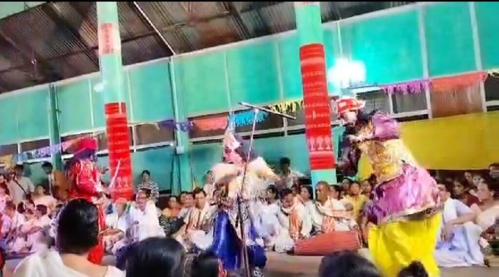 নিউজ ব্যুৰ’,নগাঁও,১২ জুলাই :–নগাঁও জিলাৰ দক্ষিণপাট অঞ্চলৰ বৰজহাৰ কীৰ্ত্তনঘৰৰ নৱনিৰ্মিত মণিকূটত সিংহাসন প্ৰতিষ্ঠা পৰ্বৰ শুক্ৰবাৰে নিশা সফলতাৰে সামৰণি পৰে। দুদিনীয়া কাৰ্যসূচীৰে আয়োজিত প্ৰতিষ্ঠা পৰ্বৰ অন্তিমটো দিনৰ কাৰ্যসূচী অনুসৰি শুক্ৰবাৰে পুৱা ধৰ্মীয় শোভাযাত্ৰা, নাম-প্ৰসংগ,ভোগ বিতৰণৰ পাছত নিশালৈ “দ্ৰোণপৰ্ব” ভাওনাখনি পৰিবেশন কৰা হয়। পুৱাৰ ভাগত উলিওৱা বিশাল ধৰ্মীয় শোভাযাত্ৰাই দৃষ্টি আকৰ্ষণ কৰে পথচাৰীৰ। কীৰ্ত্তনঘৰ পৰিচালনা সমিতিৰ সম্পাদক লক্ষ্যব্ৰত বৰঠাকুৰৰ নেতৃত্বত ৰূপায়িত ধৰ্মীয় শোভাযাত্ৰা কাৰ্যসূচীত অঞ্চলৰ পাঁচ শতাধিক ভক্তপ্ৰাণ ৰাইজে জাতীয় সাজ-পাৰ পৰিধান কৰি অংশগ্ৰহণ কৰে। ইপিনে প্ৰথমটো দিনৰ কাৰ্যসূচী অনুসৰি বৃহস্পতিবাৰে পুৱা বেলা সিংহাসন প্ৰতিষ্ঠা,দুপৰীয়া নাম-প্ৰসংগ, গোপাল ভোগ বিতৰণ আৰু সন্ধিয়ালৈ হ’বলগীয়া ভাওনাখনিৰ বাবে “বৰধেমালি” পৰিবেশন কৰা হয় ।