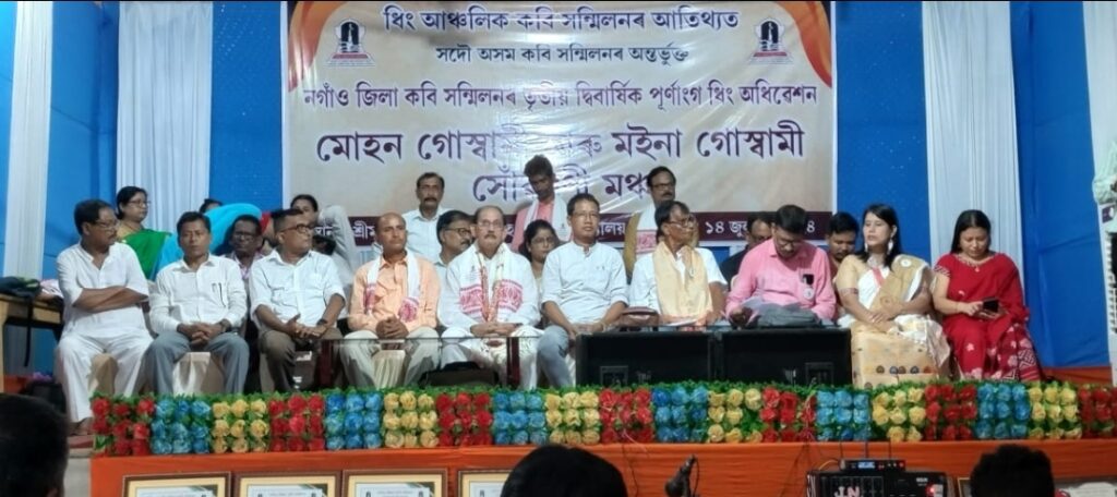 নিউজ ব্যুৰ’,নগাঁও,১৪জুলাই :–১৯৮৭ চনত কবিতাক মানুহৰ প্ৰিয়তম সম্পদলৈ ৰূপান্তৰ কৰাৰ লক্ষ্য আৰু উদ্দেশ্যৰে গঠন হোৱা সদৌ অসম কবি সন্মিলনৰ অন্যতম নগাঁও জিলা কবি সন্মিলনৰ তৃতীয় দ্বি-বাৰ্ষিক পূৰ্ণাংগ ধিং অধিৱেশনৰ ৰবিবাৰে অনুষ্ঠিত হৈ যায় । এই উপলক্ষে ধিং মহাবিদ্যালয়ৰ শ্ৰীমন্ত শংকৰদেৱ প্ৰেক্ষাগৃহত আয়োজিত দ্বিবাৰ্ষিক অধিৱেশনখনি ধিং আঞ্চলিক কবি সন্মিলনৰ আতিথ্যত দিনজোৰা কাৰ্যসূচীৰে অনুষ্ঠিত হয়। কাৰ্যসূচী অনুসৰি পুৱা ৮ বজাত পতাকা উত্তোলনেৰে অনুষ্ঠানৰ শুভাৰম্ভণি কৰে নগাঁও জিলা কবি সন্মিলনৰ সভাপতি দ্বিজেন্দ্ৰ নাথ হাজৰিকাই । পতাকা উত্তোলক হাজৰিকাক সহযোগিতা আগবঢ়াই জিলাখনৰ সাতটা শাখাৰ সাতজন সভাপতিয়ে। বন্তি প্ৰজ্বলন কৰে ধিং আঞ্চলিক কবি সন্মিলনৰ সভাপতি কৰৱী শইকীয়া আৰু প্ৰাক্তন সভাপতি নিৰলা শইকীয়াই । পৰৱৰ্তী কাৰ্যসূচীত সদৌ অসম কবি সন্মিলনৰ পিতৃ পুৰুষ স্বৰূপ ৰাম গগৈৰ প্ৰতিচ্ছবিত মাল্যাৰ্পণ কৰে জামুগুৰি শাখা কবি সন্মিলনৰ সভাপতি কৰৱী লিগিৰাই। ইয়াৰ পাছতেই কবি দুৰ্গেশ্বৰ বৰকটকীয়ে গছপুলি ৰোপণৰ কাৰ্যসূচীৰ আৰম্ভণি কৰে । অনুষ্ঠানত আয়োজিত ক্ষুদ্ৰ গ্ৰন্থমেলাৰ দ্বাৰ উদ্বোধন কৰে নগাঁও জিলা সাহিত্য সভাৰ প্ৰাক্তন সভাপতি নিত্যানন্দ বৰাই । ১০ বজাত অনুষ্ঠিত হোৱা প্ৰতিনিধি সভাৰ উদ্বোধন কৰে শিশু-সাহিত্যিক ত্ৰৈলোক্য ভট্টাচাৰ্যই । প্ৰতিনিধি সভাৰ সমান্তৰালকৈ অনুষ্ঠিত আমন্ত্ৰিত কবিৰ কবি সন্মিলনৰ উদ্বোধন কৰে নগাঁও জিলা কবি সন্মিলনৰ প্ৰতিষ্ঠাপক সম্পাদক মদাৰজ্যোতিয়ে । অনুষ্ঠানত আমন্ত্ৰিত কবিৰূপে মনোজ কুমাৰ দেওৰজা,জয়ন্ত কুমাৰ মান্তা,মাধৱ চন্দ্ৰ ডেকা,মৌচুম বুঢ়াগোহাঁই,প্রজ্ঞা পাৰমিতা বৰুৱা,কৌস্তুভ খাউণ্ড,মিনতি দেৱী কাকতি,ড° ৰূপা ডেকা পাটৰ,দীপ হেষ্টিংচ বড়ি,সত্যজিৎ গগৈ,ফটিক নন্দন ৰাভা,ৰাজীৱ ৰাভা,জিতুমণি বৰদলৈ,ড° নিৰ্মালি বৰা মালাকাৰ,মিন্টু দাস,ময়ুৰ কুমাৰ বৰা,গোবিন্দ মালাকাৰ,কুমাৰ বিভূতি উপস্থিত থকাৰ লগতে সত্ৰ পৰিচালক হিচাপে গুণ কাকতী,ৰাজেন বৰা,অশোক ৰাম ভট্টাচার্য,কৰবী লিগিৰা,পুতুল চন্দ্র ডেকা, অতুল চন্দ্ৰ কাকতি,সঞ্জীৱ সাগৰ চৌধুৰী,কৰবী শইকীয়া,শশী কেওট, কল্পনা মহন্ত ডেকা,বিনু লস্কৰ ঠাকুৰীয়া, এল.প্রদীপ কুমাৰ সিংহ, ড° অচ্যুৎ কুমাৰ শইকীয়া আৰু পুতুলী মুদৈ উপস্থিত থকা অনূষ্ঠানত ডেৰ শতাধিক কবিয়ে কবিতা পাঠ কৰে । প্ৰতিনিধি সভাত ২০২৪-২০২৬ বৰ্ষৰ বাবে নগাঁও জিলা কবি সন্মিলনৰ নতুন কাৰ্যনিৰ্বাহক সমিতিখন গঠন কৰা হয়। সভাত দুৰ্গেশ্বৰ বৰকটকীক সভাপতি, দ্বীপজ্যোতি কাকতিক সম্পাদক,ৰূপম নাথ,দেৱ বৰা আৰু স্বপ্না দেৱীক সহযোগী সম্পাদক,গুণ কাকতি, মদাৰজ্যোতি আৰু কবিতা বৰাক উপ-সভাপতি,নৱ কাশ্যপ আৰু নীলকমল শইকীয়াক প্ৰচাৰ সম্পাদক,প্ৰদ্যুম্ন বৰাক পত্ৰিকা