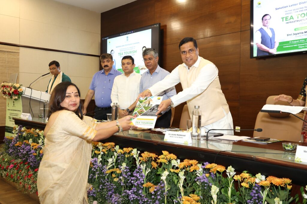 গুৱাহাটী, ১৭ আগষ্ট: আজি জনতা ভৱনত অনুষ্ঠিত এক বিশেষ অনুষ্ঠানত অসম চৰকাৰৰ মন্ত্ৰী জয়ন্ত মল্ল বৰুৱাই অসমৰ চাহ পৰ্যটন আন্তঃগাঁথনিৰ প্ৰচাৰ আৰু বিকাশৰ বাবে ‘অসম চাহ পর্যটন উন্নয়ন আঁচনি’ৰ দ্বিতীয় পৰ্যায়ৰ অধীনত ৩৪ খন নিৰ্বাচিত চাহ বাগিচাৰ মাজত অনুমোদন পত্ৰৰ আনুষ্ঠানিক বিতৰণ কৰে।
