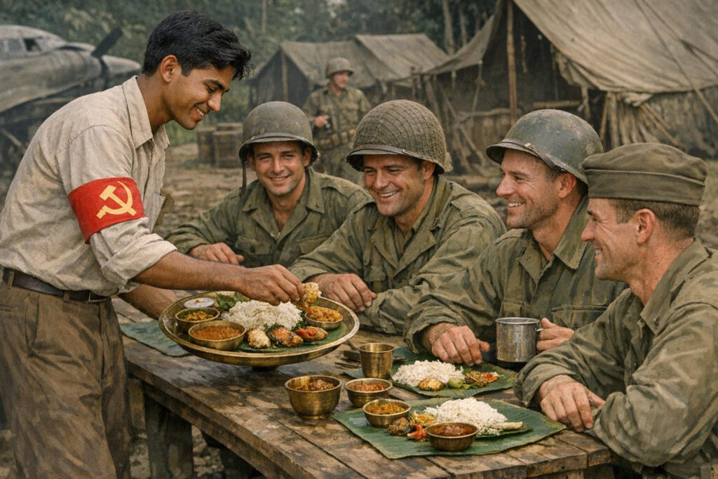 কিন্তু সামৰিক স্থল অভিযানৰ দিনবোৰত দূৰৱৰ্তী অঞ্চলত সৈনিকসকলে বহু সময় খাদ্যৰ অভাৱৰ সন্মুখীন হয়। নগাঁৱত আমেৰিকান সৈন্যৰ এটা প্লাটুনেও তেনে পৰিস্থিতিৰ সন্মুখীন হৈছিল। তাৰ পিছত এই সৈনিকসকলে ছিৰাজ ঘানীৰ ঘৰলৈ গৈ খাদ্যৰ বাবে অনুৰোধ কৰিছিল। ঘানি এজন দৃঢ় ছ’চিয়েলিষ্ট আৰু কমিউনিষ্ট আছিল। সেই সময়ত আমেৰিকা নিজেই কেপিটেলিষ্ট ধাৰণাৰ প্ৰতিনিধিত্ব কৰিছিল আৰু কমিউনিষ্টসকলে ইয়াক অপছন্দ কৰিছিল। তথাপিও, সেই মুহূৰ্তত ছিৰাজে নিজৰ আদৰ্শগত পাৰ্থক্যৰ কথা নাভাবি, মানৱতাৰ স্বাৰ্থত এই আমেৰিকান সৈনিকসকলক সহায় কৰিবলৈ সিদ্ধান্ত লৈছিল।