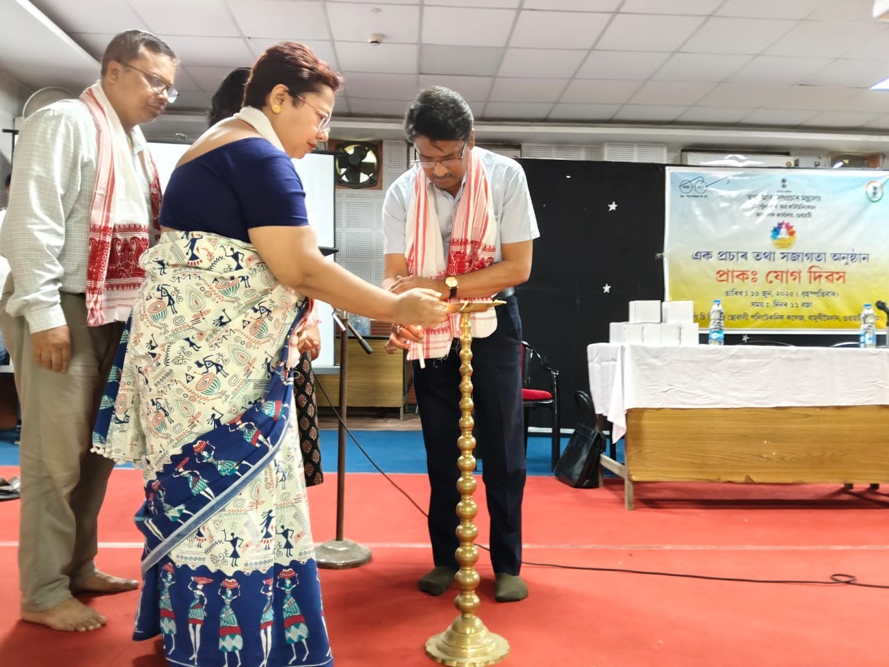 The programme witnessed the gracious presence of esteemed dignitaries, including Dr. Najrul Haque, Principal of PCPS Girls Polytechnic College, Shri Sankhapani Baruah, a faculty member of the college, Shri Pranab Kumar Nath, Assistant Director of the Press Information Bureau, Guwahati, and Yoga Expert Shri Madhusmita Goswami.
