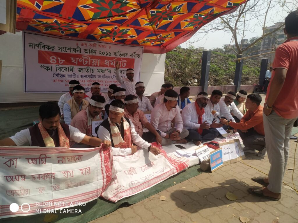 “কা” বাতিলৰ দাবীত আজিৰ পৰা ৪৮ ঘন্টীয়া ঘৰ্মঘট আৰম্ভ’কা বিৰোধী জাতীয় মঞ্চ’ৰ :: বিজেপি চৰকাৰলৈ সকীয়নী – কা বাতিল কৰক, নহলে পৰিনাম ভয়াবহ হব