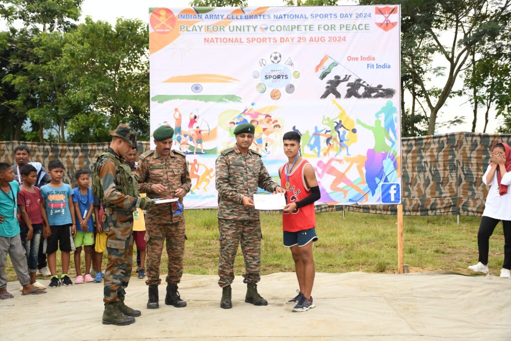 In a vibrant celebration of National Sports Day, the Indian Army, under the aegis of Spear Corps, organized a series of sports events in Phougakchao Ikhai, Bishnupur district. The event aimed to promote physical fitness, unity, and community spirit through sports, drawing enthusiastic participation from the local community.