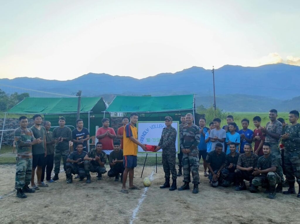 The Indian Army strengthened its community ties by hosting a friendly volleyball match at Torbung Bangla in Churachandpur district , Manipur on 19 September. A combined team from S. Kwatlian and Pengjang villages faced off against the Army team, showcasing impressive skills and sportsmanship. The thrilling match, of three sets played between the two teams, was won by the team of locals.