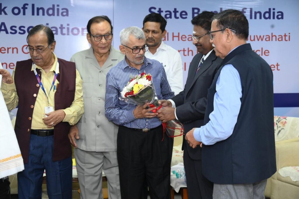 30 members of SBIPA were honoured with fulam gamosa, bouquet, and gifts on attainment of 75 years of age. Nurul Islam Laskar, former chief manager, public relations, SBI was felicitated with a memento, bouquet and shawl for bagging the coveted “Chanakya” award in public relations recently. Mrigen Kumar Kalita, another former SBI personnel, was honoured for his contribution in the field of sports, art and culture.