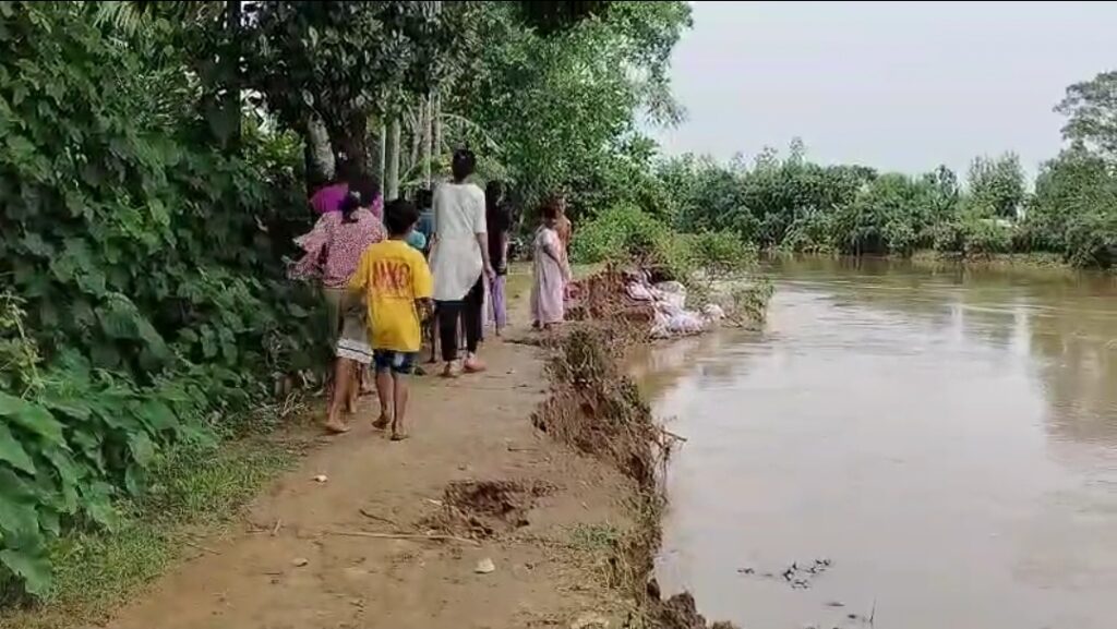 Palasbari, June 3 – Unrelenting rainfall has triggered severe erosion in Paschim Balapara and No. 1 Balasidhi villages under Chhaygaon in Kamrup district, disrupting connectivity and posing a serious threat to public safety. The situation has grown critical as floodwaters have swept away a geo-bag embankment, leaving residents anxious and vulnerable.