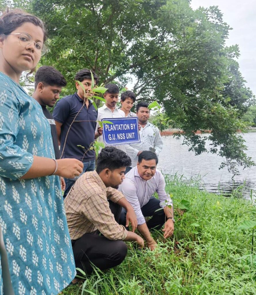 The week-long program is planned to plant 300 tree saplings at various places. GU NSS Cell has been conducting a major program “Let’s make the Hills Green” for the last four years and this year too trees will be planted in the empty spaces of the hills. Dr. Rituporna Bora, NSS Program Officer, GUNSS Unit and NSS volunteers also planted trees today.