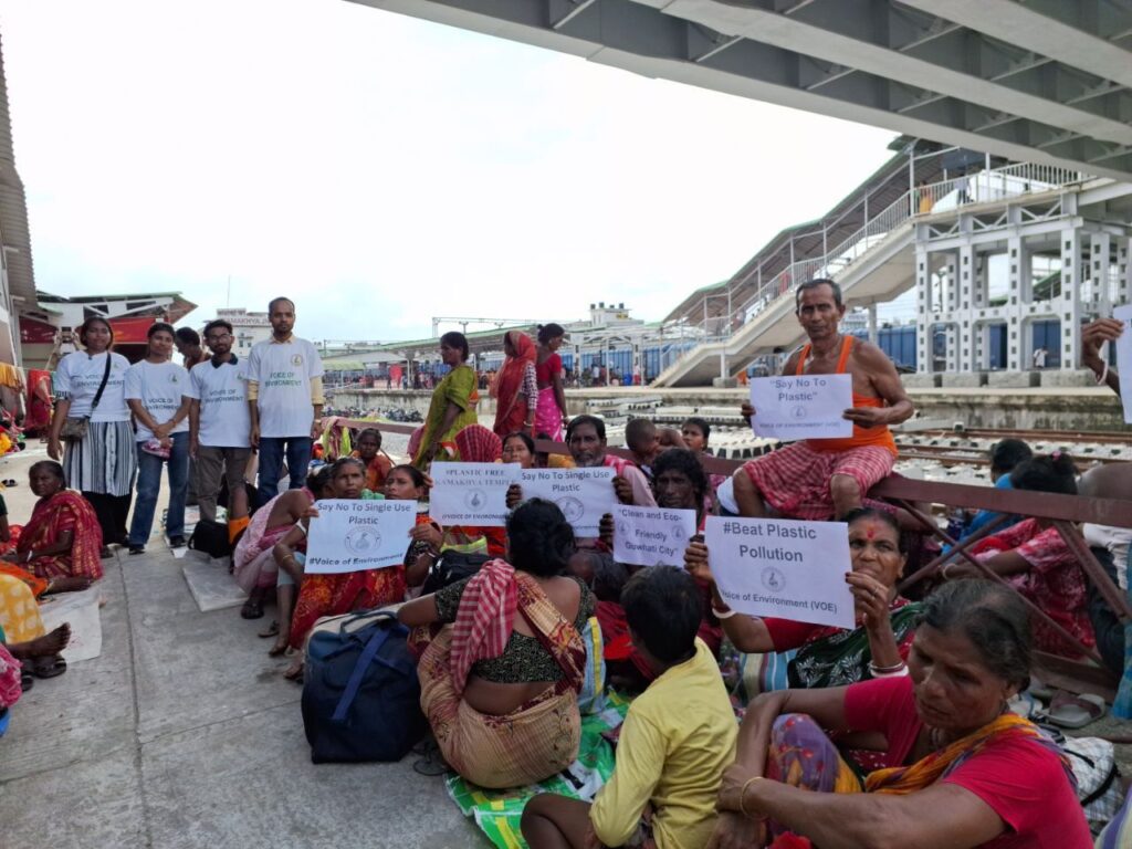 The campaign saw participation from noted environmentalists including Moharana Choudhury, Arun Sarma, and Sabita Duta, who led the signature drive and public interaction programs at the station premises. Volunteers Pallabi Saikia and Priti Saikia engaged with devotees and shopkeepers across platforms, waiting halls, and nearby vendor zones, encouraging them to adopt environmentally responsible practices.